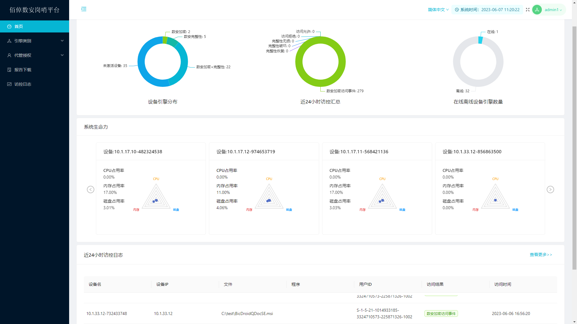 佰倬数安文件系统密码模块由客户端和服务端组成,已分别获颁国家商用密码产品认证证书(安全等级二级),其佰倬数安文件系统密码模块服务端(即中央岗哨平台)对各受保数据的机密性、完整性及内生安全性,实时进行集中的审计、监察和管理。