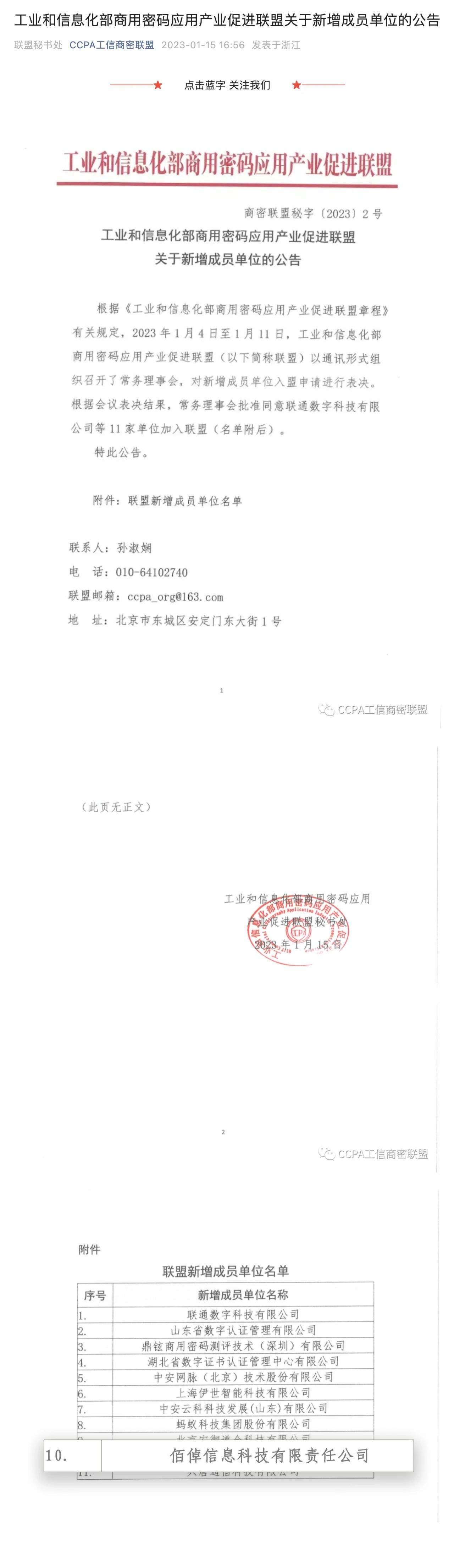 恭喜佰倬成为工信部商用密码应用产业促进联盟成员单位