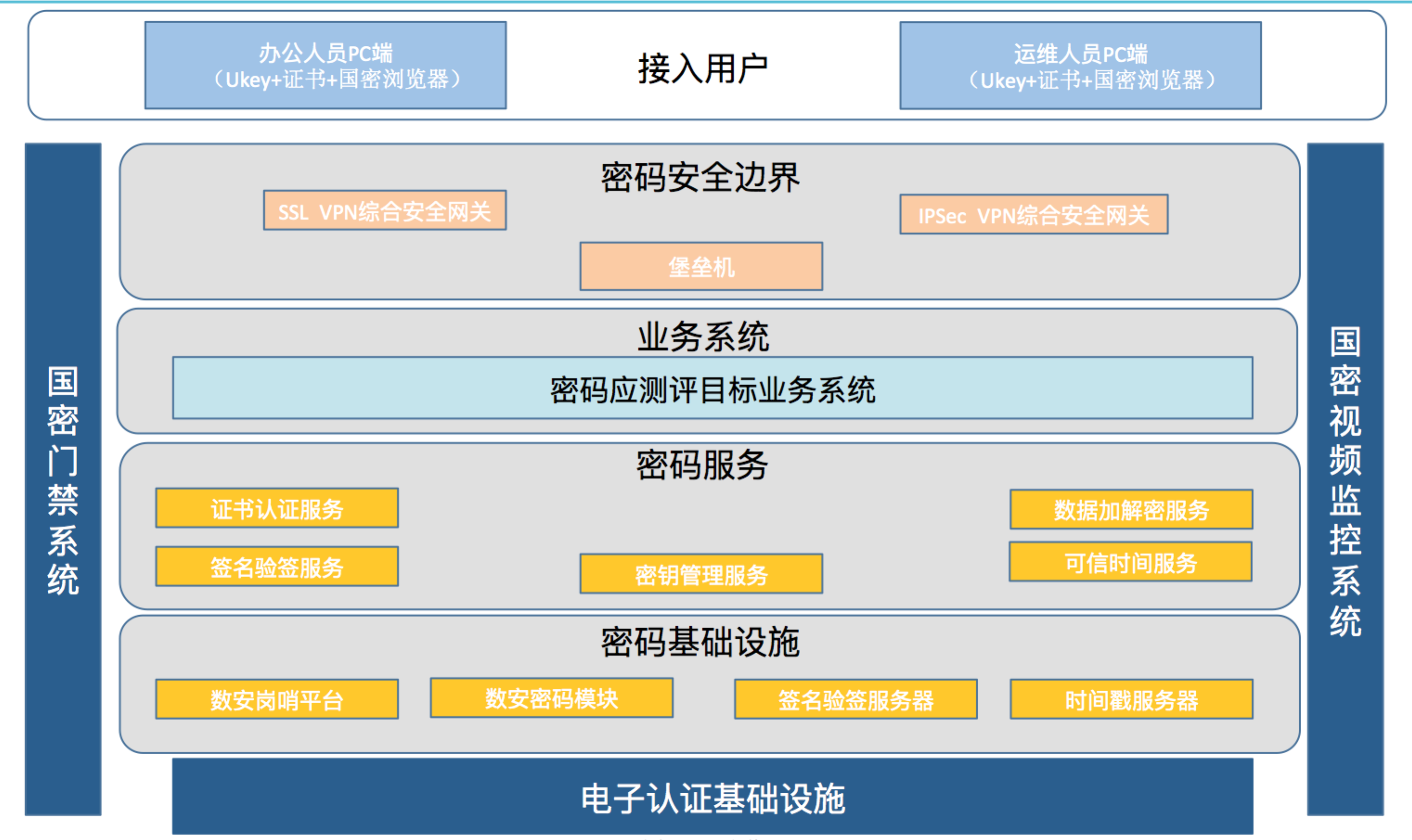 3、密钥管理系统。 不同用户的数据、不同类型的数据需要不同的密钥, 通过部署密钥管理系统,可规范密钥管理,实现自上而下密码应用的互信互任;