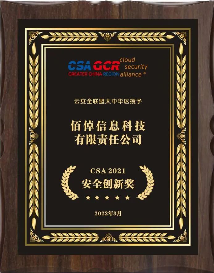 佰倬信息科技公司荣获“CSA安全创新奖”